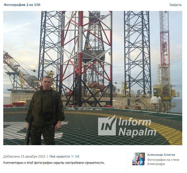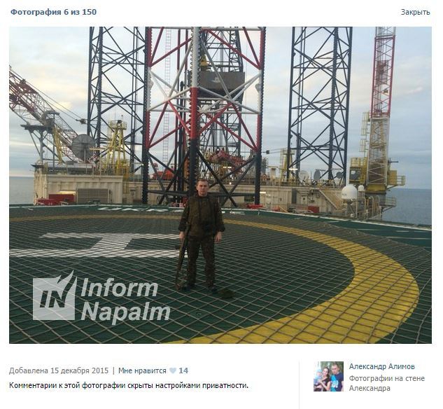 15 декабря 2015 года, в день так называемой операции по перемещению СПБУ, Александр Алимов также находился на одной из вышек, о чем свидетельствуют его фото. По периметру ведется визуальное наблюдение за акваторией.