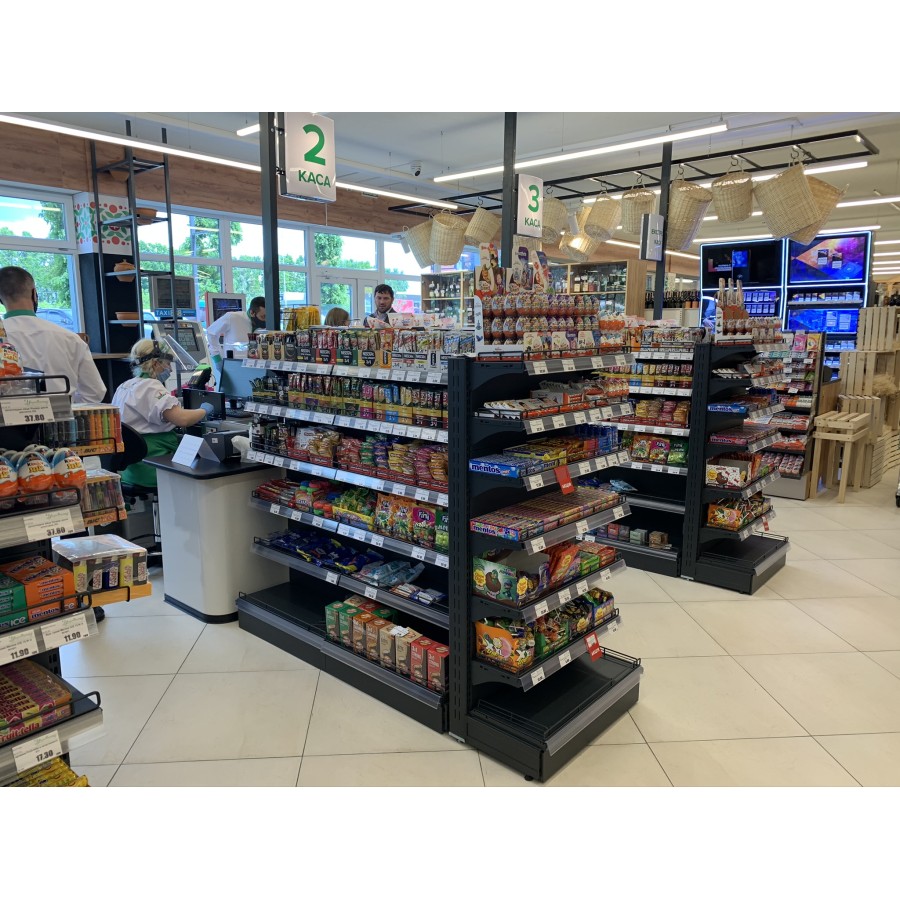 - торцевые располагаются вдоль проходов, привлекают внимание покупателей сразу при входе в магазин;