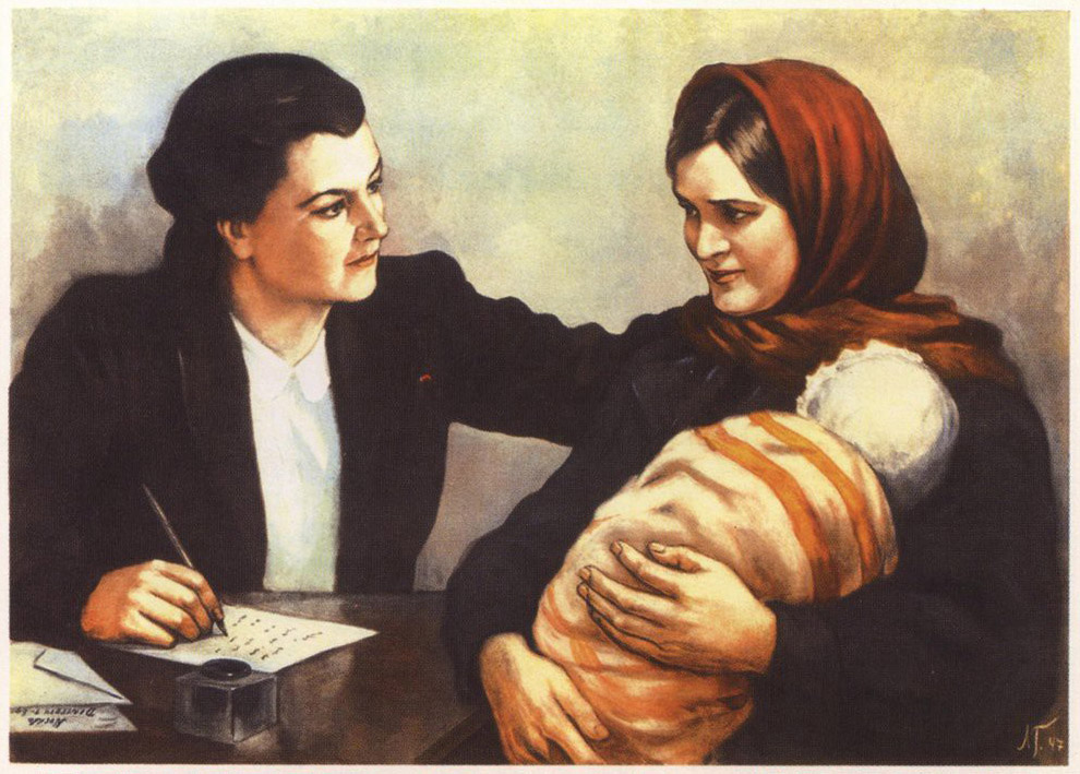 Увидев, что сознательные советские гражданки не спешат в большом количестве рожать будущих солдат мировой революции, большевики начали ужесточать политику в отношении абортов — в 1926 году запретили прерывание первой беременности, потом аборты сделали платными — стоимость привязывалась к доходу семьи и составляла примерно четверть от него (привет, «бесплатная» медицина), а в 1936 году аборты и вовсе запретили.