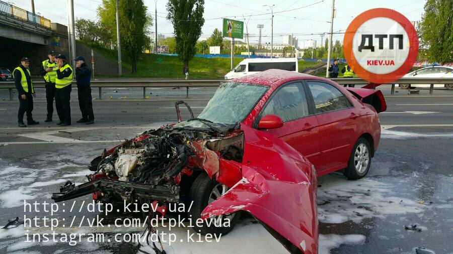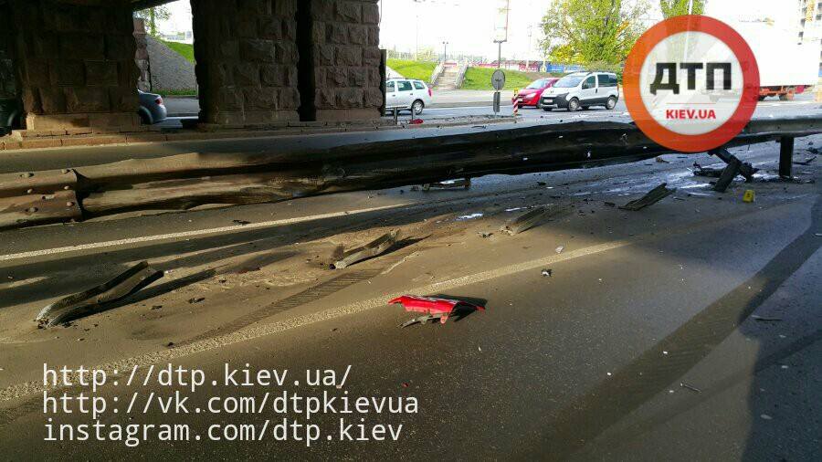 Утром 2 мая в Киеве на проспекте Победы водитель такси Kia врезался в отбойник, так как не заметил опору путепровода. Тормозной путь автомобиля составил 35 метров. Об этом сообщает портал dtp.kiev.ua в Facebook.