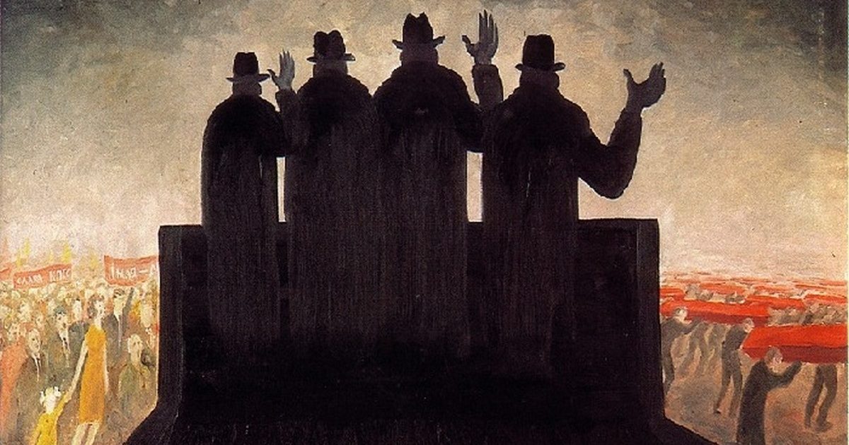 На фото — люди несут портреты партийных чиновников и основателей «Марксизма-Ленинизма»: