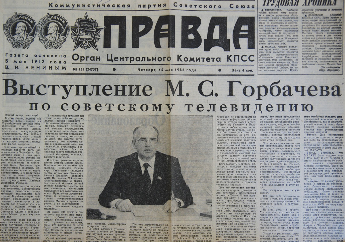 Михаил Сергеевич Горбачёв выступил с официальным обращением о Чернобыльской катастрофе только 14 мая 1986 года, в лучших советских традициях завявив о том, что «худшее удалось предовратить». Мол, всё под контролем и так далее.