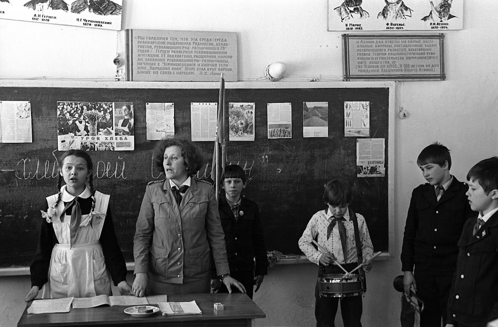 Сыктывкарская школа. Со стен на детей взирают агитационные плакаты с цитатами Ленина про «среду великорусов» и о том, что «Ленин всесторонне развил теорию социалистической революции».