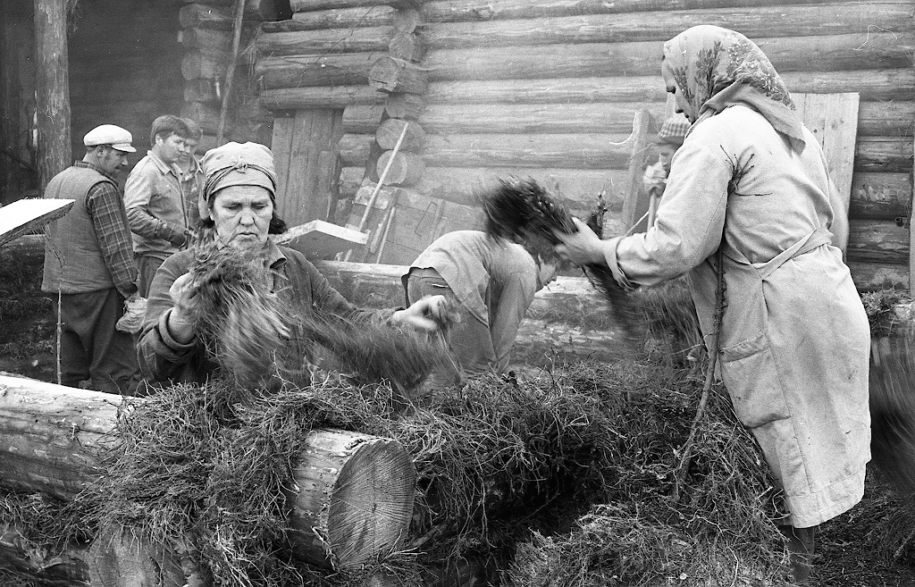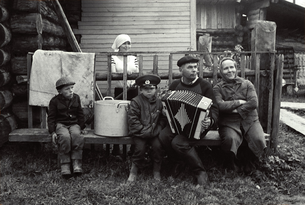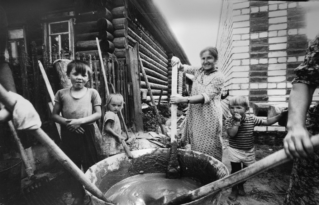 Стоп-кадр сельской жизни, на снимке — достаточно благополучная семья, видно что люди непьющие и работящие. При этом обратите внимание на нищету вокруг — лично я не видел ни одной (ни одной!) фотографии советской деревни, которая напоминала бы сельскую жизнь в Германии, Чехии или хотя бы Румынии — с их аккуратными домиками, черепичными крышами и палисадниками. На советских фото всегда будут очень старые трухлявые деревянные хаты и нищета — сколько ни работай, а ничего не заработаешь.