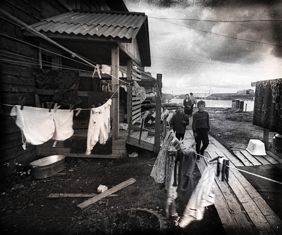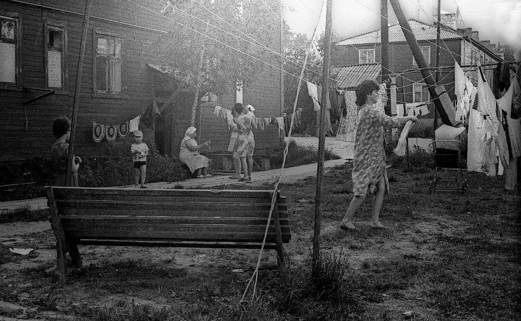 Тоже очень хороший стоп-кадр в стиле Зиновьева — это просто какой-то тлен и безысходность. Снимок сделан в конце семидесятых или в начале восьмидесятых годов, но в кадре какое-то ощущение абсолютного безвременья — это мог быть и снимок шестидесятых, пятидесятых или даже двадцатых годов — не изменилось ровным счётом ничего. Что дала этим людям советская власть, кроме нищеты?