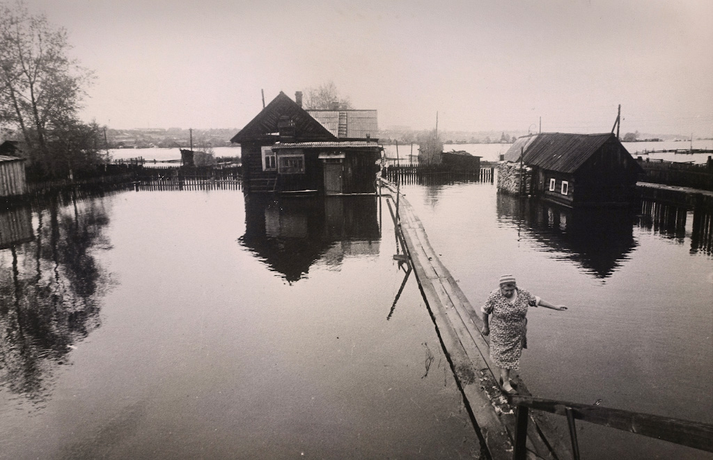 Можно ли гордиться советской страной, балансируя на самодельном дощатом мостике среди затопленных хаток XIX века?