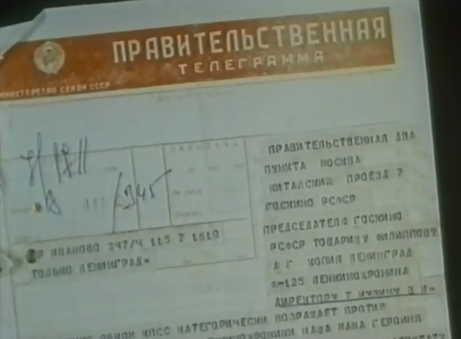 02. Сперва покажу вам, как именно запрещали фильм, а потом уже приступим к его обзору. В предисловии к фильму показана правительственная телеграмма, при помощи которой кино было запрещено. Вот такой текст она содержит: