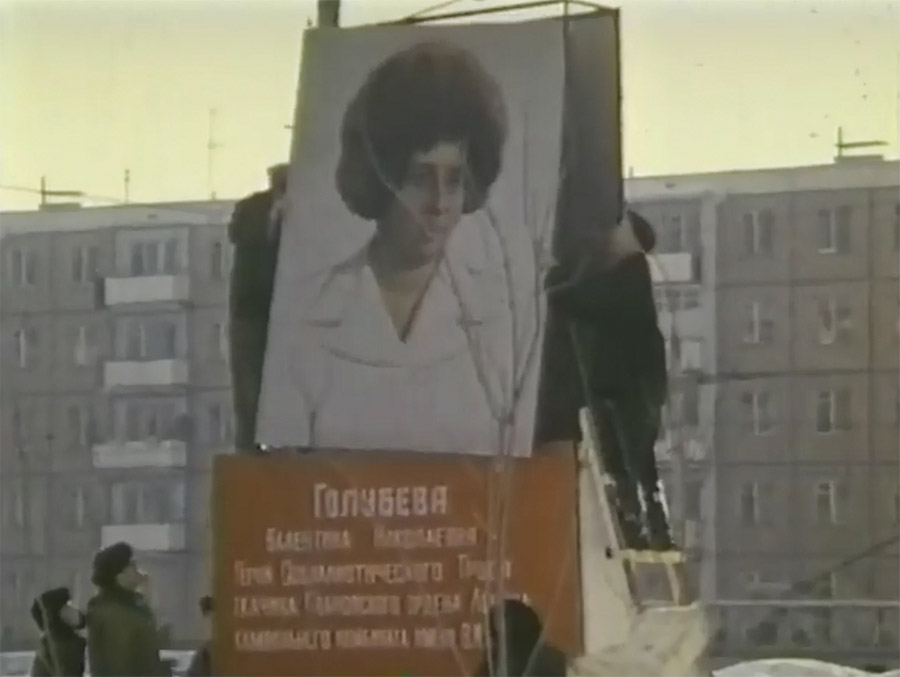 Николай Обухович решил подойти к созданию фильма творчески и нестандартно — он показывает то, как на самом деле живёт в СССР та самая героиня, как выглядит её квартира и то, как она ведёт себя дома. В ленте запечатлён убогий совок во всей его красе — несчастная ткачиха почти не бывает дома, её муж и сын живут в убогой крошечной хрущёвке и едят на кухне рыбу с газеты, а приходя домой, женщина снимает сапоги с опухших ног и плачет в коридоре…