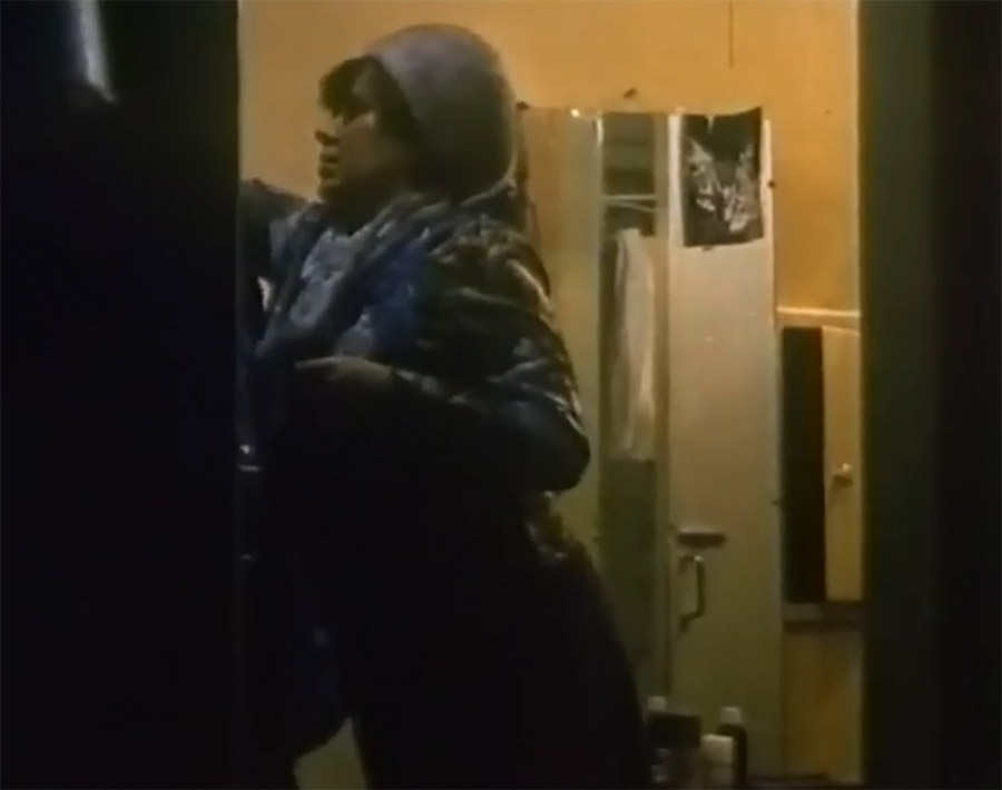 07. А режиссёр тем временем продолжает показывать быт героини. Микроскопическая прихожая, своими размерами напоминающая коробку из-под холодильника. Слева входная дверь в квартиру, справа — двери в комнату и кухню, а прямо — ванная, в которой один из сыновей Валентины чистит зубы. В ванной висят какие-то тряпки и дешевая полиэтиленовая штора, сделанная из плёнки для парников.