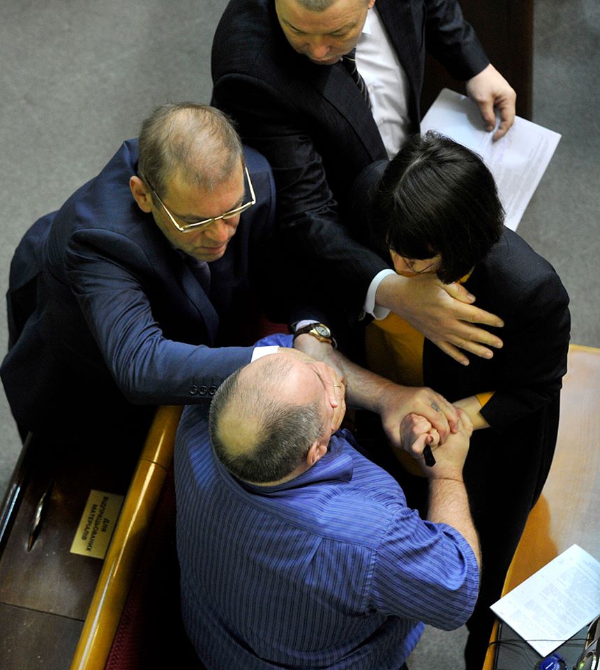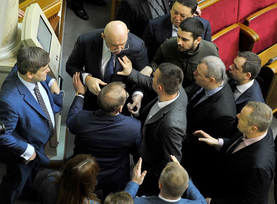 Группа парламентариев подбежала к Сергею Пашинскому – одному из авторов законопроекта – и вступила с ним в словесную перепалку. Во время ссоры один из депутатов толкнул Пашинского.