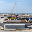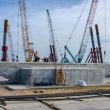 Строители возвели на острове Тузла первую опору моста через Керченский пролив под автомобильную трассу.