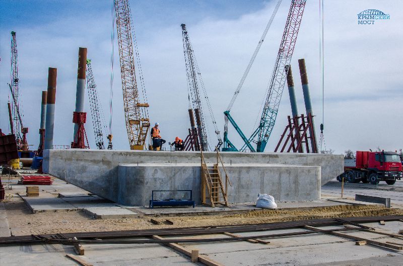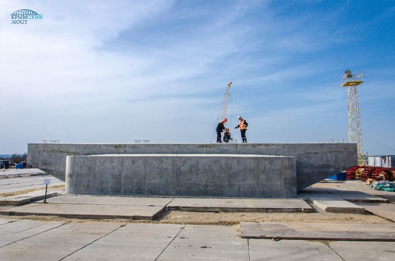 «Высота этой опоры небольшая — три метра. Вместе с пролетным строением она поднимет мост над сушей примерно на семь метром. По мере продвижения к акватории высота опор будет расти. Дорога плавно поднимется и достигнет максимальной отметки над судоходным каналом (35 м)», — рассказал инженер строительного участка Алексея Емченко.