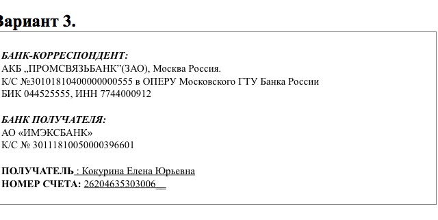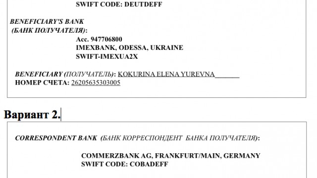 Данные перевода, код и суммы вы можете сообщить по адресу электронной почты: [email protected]