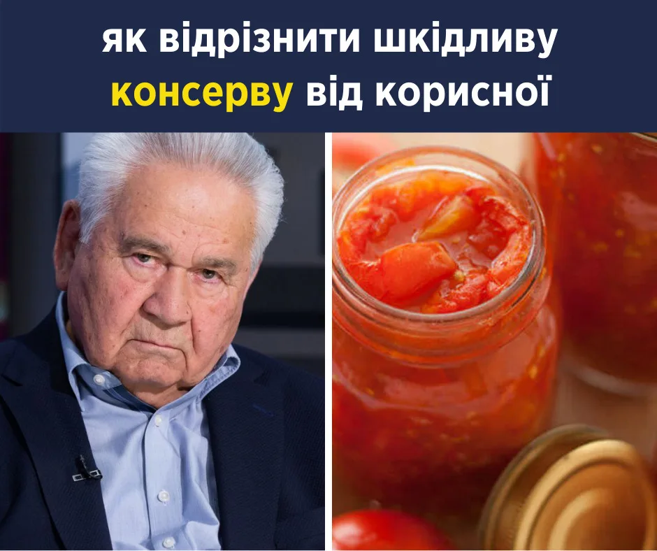 Слева фото Фокина, которому противопоставляется снимок консервированных овощей, которые Супрун называет полезными.