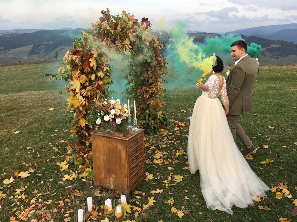 - Место проведения. Безусловно, горы как локация для свадьбы сами по себе необычное и интересное место, ведь здесь свежий воздух, нет надобности искать удачное место для фото, много пространства.