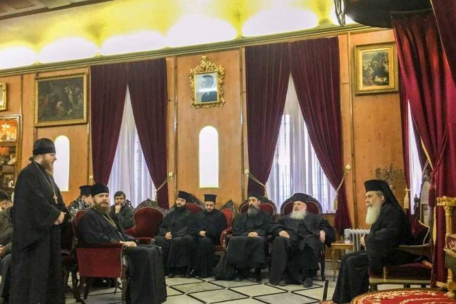 Ранее сообщалось, что делегация Московского патриархата 22 января встретилась с Иерусалимским патриархом Феофилом III несмотря на то, что 21 января в СМИ появилась информация о «тяжелой болезни патриарха». Якобы он попал в больницу и поэтому не смог встретиться с президентом Петром Порошенко, который прибыл с официальным визитом в Израиль.