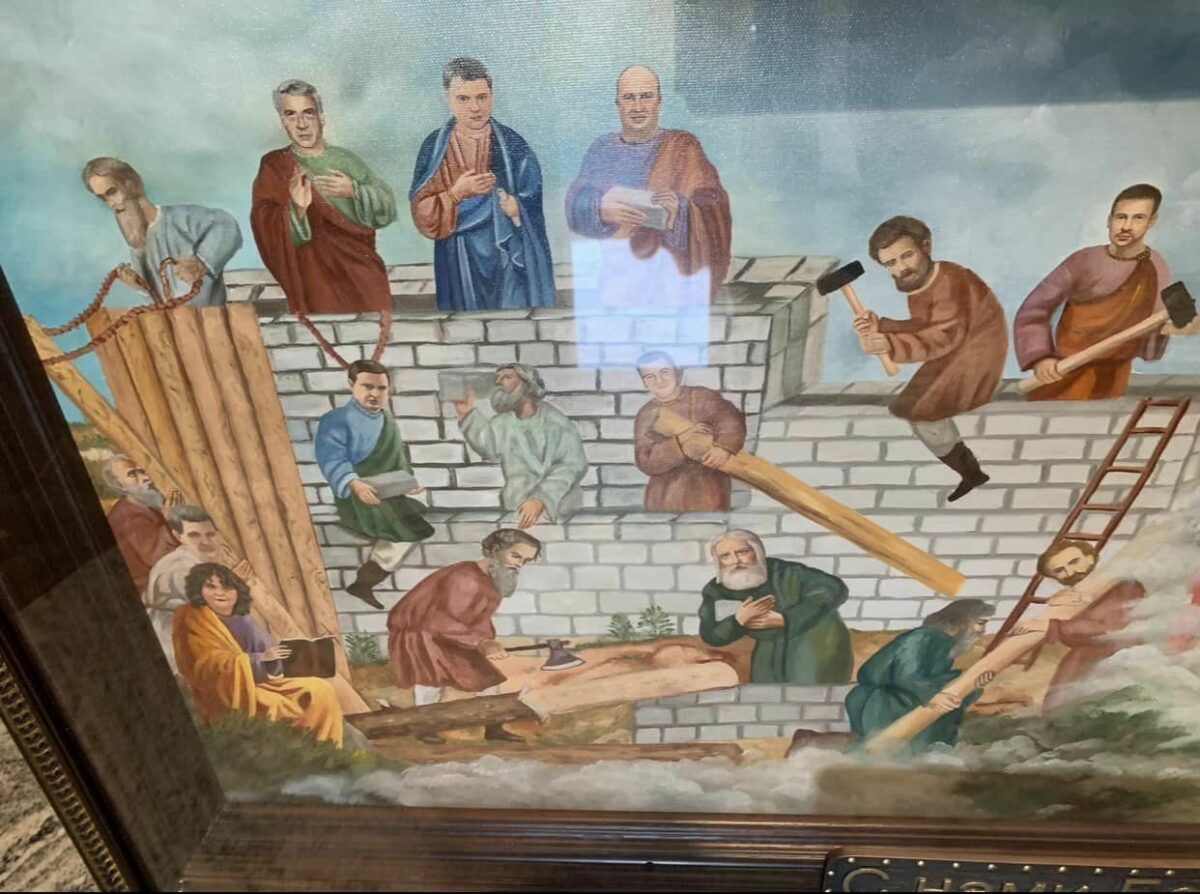 На картине изображены сам Микитась, мэр Киева Виталий Кличко, пророссийский депутат Вадим Столар и другие в образе «святых».