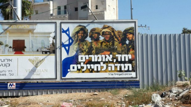 - Мендель Асман, сын киевского раввина (в центре), на плакатах в Израиле. Подпись — «Вместе скажем спасибо солдатам»