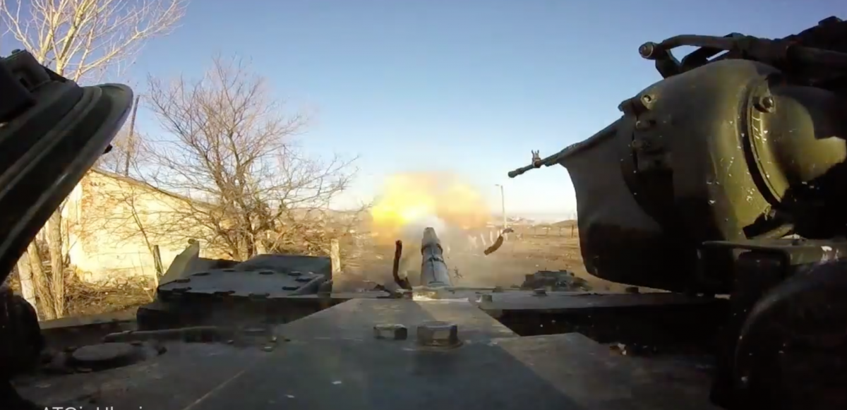 В сети появилось видео танкового боя подразделений Национальной гвардии и боевиков под Широкино.