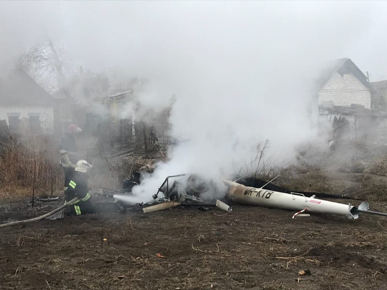 Вертолет упал примерно в 16:00 на территории частного домохозяйства в селе Тарасенково Оржицкого района.