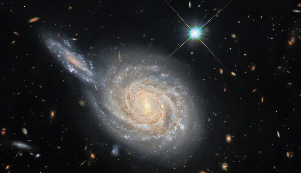 На самом деле галактики смещаются только на изображении, находясь в реальности одна от другой на большом расстоянии. На фотографии была запечатлена спиральная галактика NGC 105, находящаяся от нашей галактики на расстоянии приблизительно в 215 миллионов световых лет.
