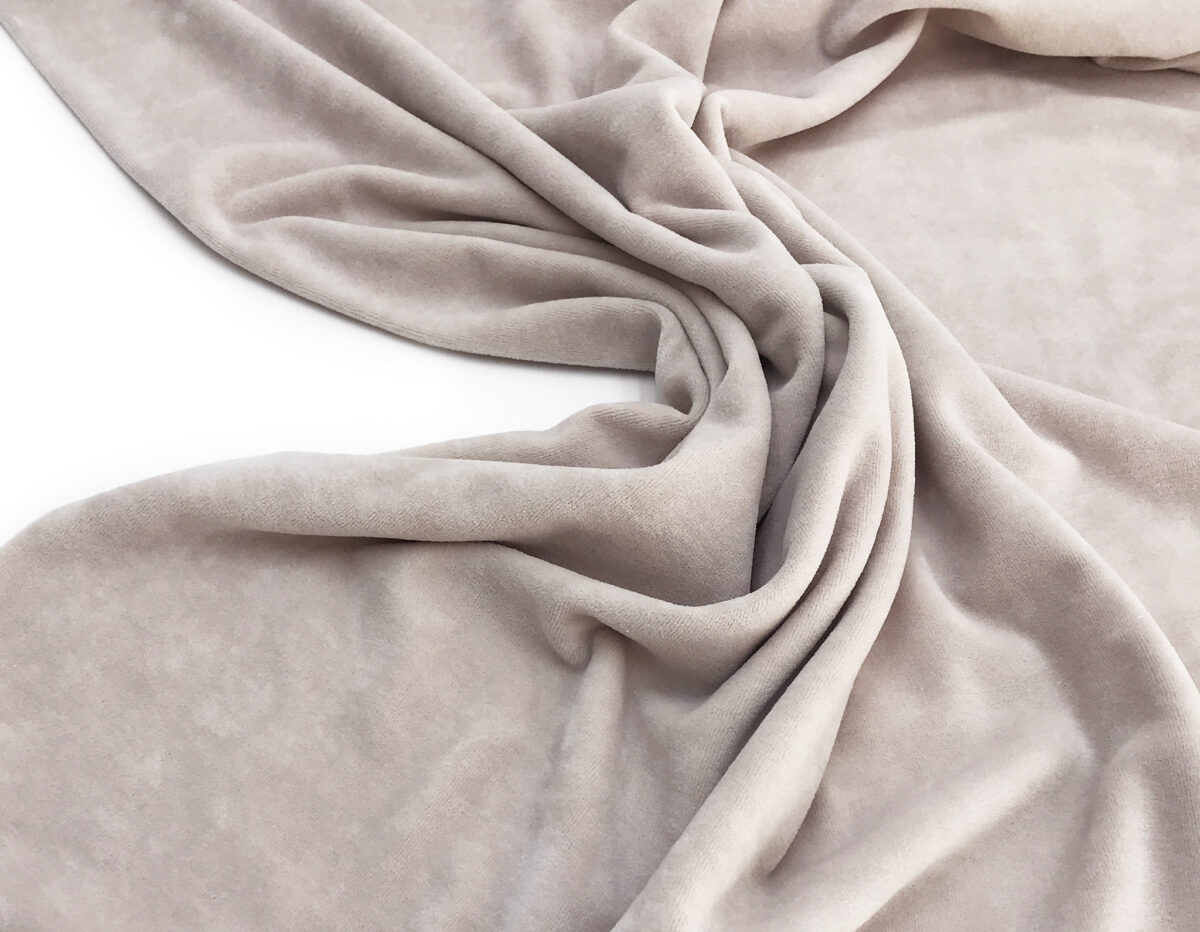 Велюр хлопковый (велюр х/б): Это велюр, изготовленный из хлопчатобумажных волокон. Он сочетает в себе мягкость и естественную воздухопроницаемость хлопка с роскошной текстурой велюра, что делает его идеальным для создания легких и удобных нарядов на каждый день.