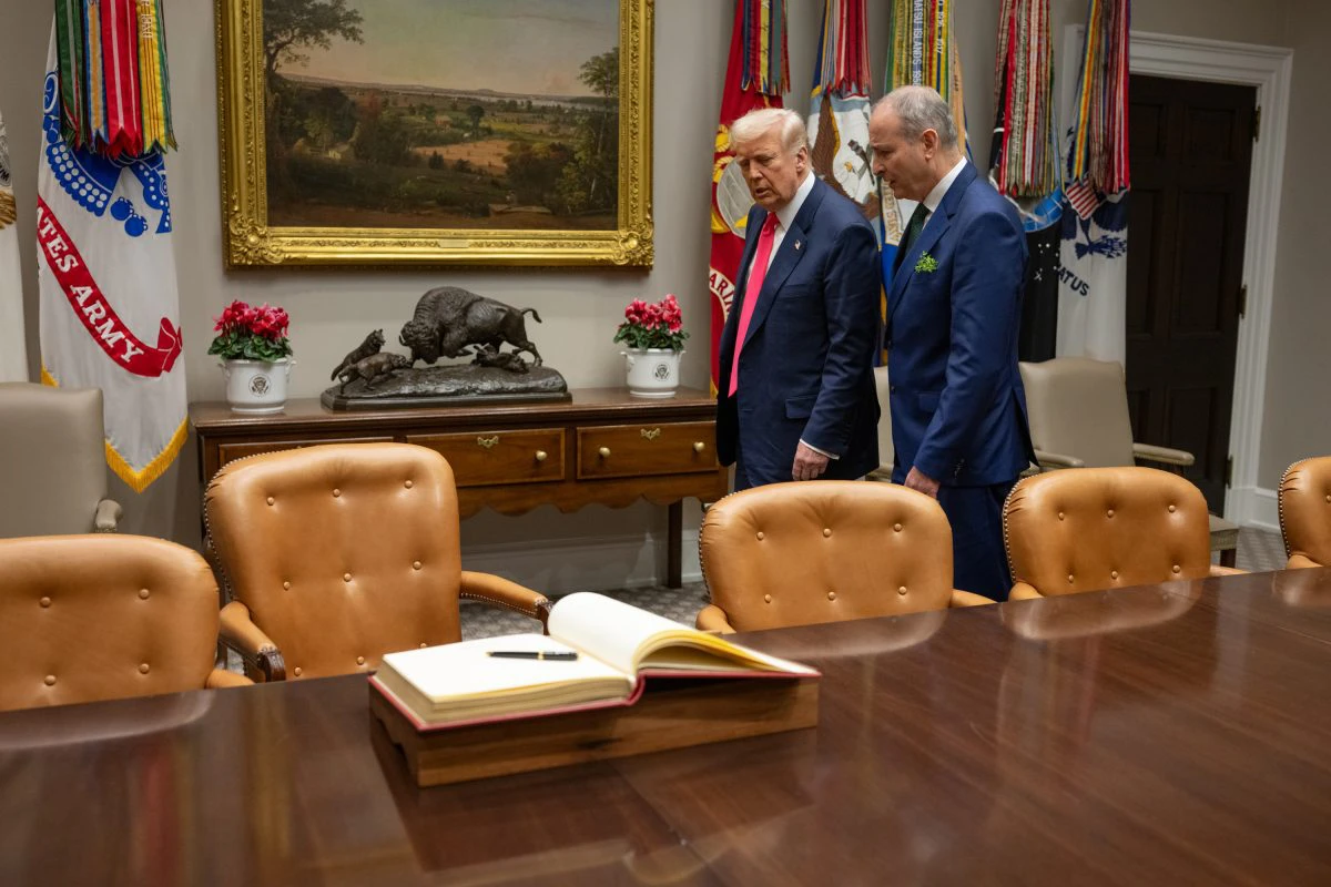 Во время разговора в Овальном кабинете Трамп заявил о намерении «вернуть» финансовые ресурсы страны. По его словам, если бы он был президентом в то время, когда компании начали перемещать производство в Ирландию, он бы ввел 200% тариф на их продукцию при ввозе в США.