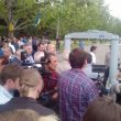 На подступах к площади собрались журналисты, депутаты областного и городского советов, чиновники, а также около тысячи людей с украинскими флагами. Никаких требований последние не выдвигают – говорят, просто хотят пройти к ОГА.