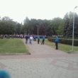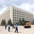 Здание и площадь перед ОГА оцеплены сотрудниками милиции, за оцеплением установили рамку металлодетектора.