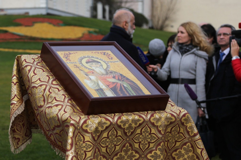Мединский сообщил, что сам закладной камень привезен из Херсонеса, где возведен храм в честь Святого князя Владимира.