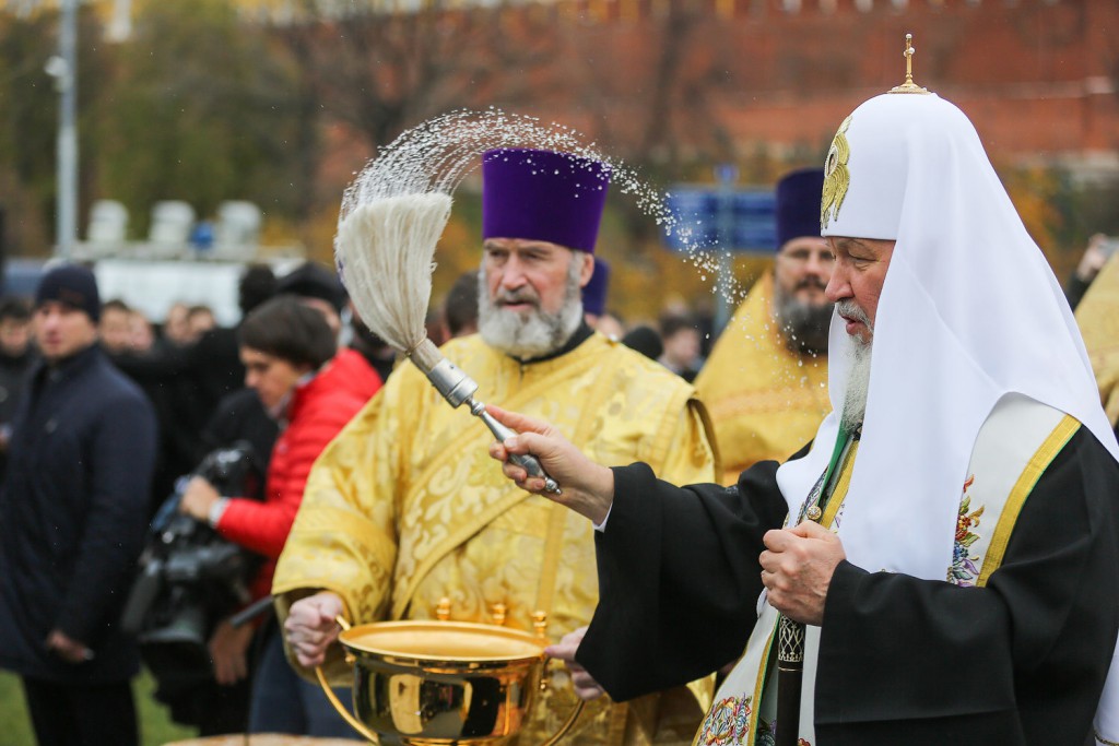 Сегодня, 3 ноября, российский патриарх Кирилл освятил закладной камень в основание памятника святому князю Владимиру на Боровицкой площади в центре Москвы.