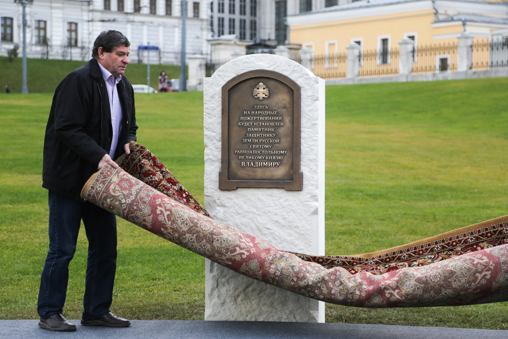На закладном камне нанесена надпись: «Здесь на народные пожертвования будет установлен памятник защитнику земли русской святому равноапостольному великому князю Владимиру».