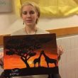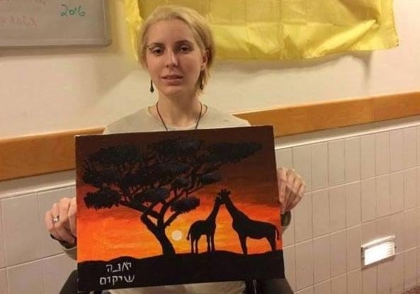 На ней она изобразила пару жирафов на фоне африканского заката. В уголке картины волонтер на иврите написала свое имя и название реабилитационного центра.
