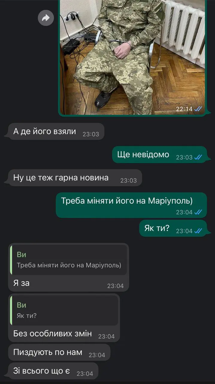 Активіст Сергій Стерненко опублікував листування зі своїм другом, який зараз захищає Маріуполь, і теж запропонував обміняти Медведчука на Маріуполь. Військовий погодився з такою пропозицією і на питання про те, як він, відповів, що без особливих змін. Він додав, що по українських захисниках б’ють з усієї зброї, яка є у російських окупантів.