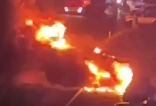 В мережу потрапили кадри, як один із безпілотників б’є по багатоповерхівці в Зеленограді. Внаслідок “падіння уламків” також зайнялося декілька авто.