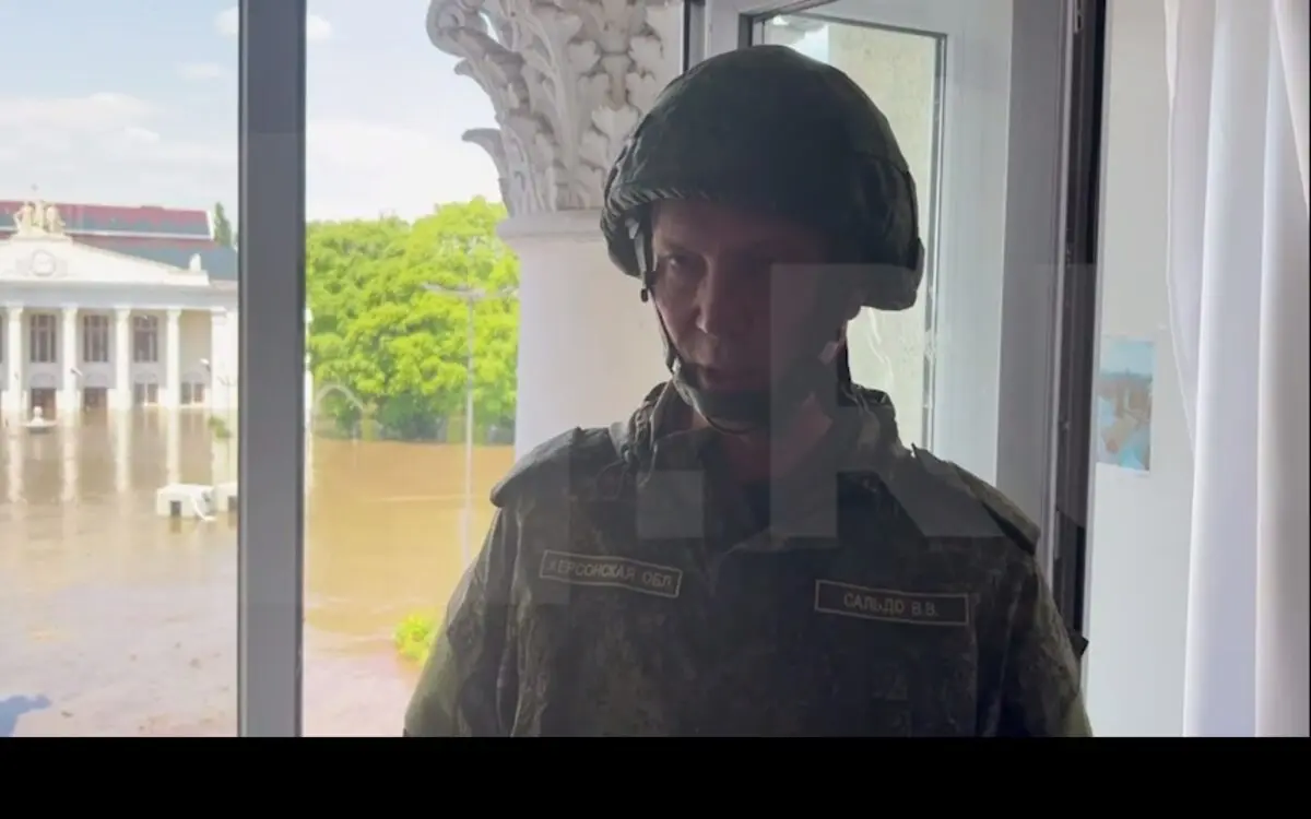 Гауляйтер Херсонської області Володимир Сальдо запевняє, що “люди спокійно пересуваються вулицями” затоплених населених пунктів через підрив Каховської ГЕС. Відповідне відео він записав на тлі затопленої Нової Каховки.
