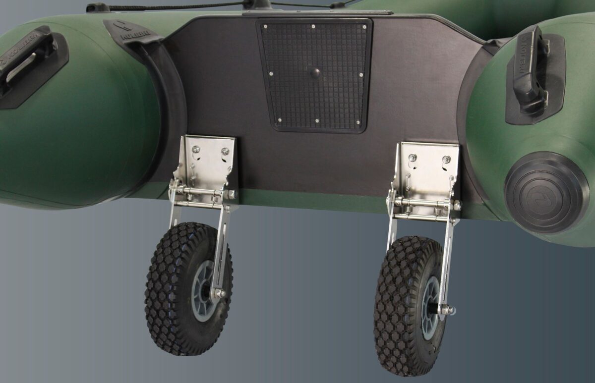 Колеса легко встановлюються на транець без складних інструментів. Система кріплень передбачає швидке складання та фіксацію у двох положеннях: робочому та піднятому.