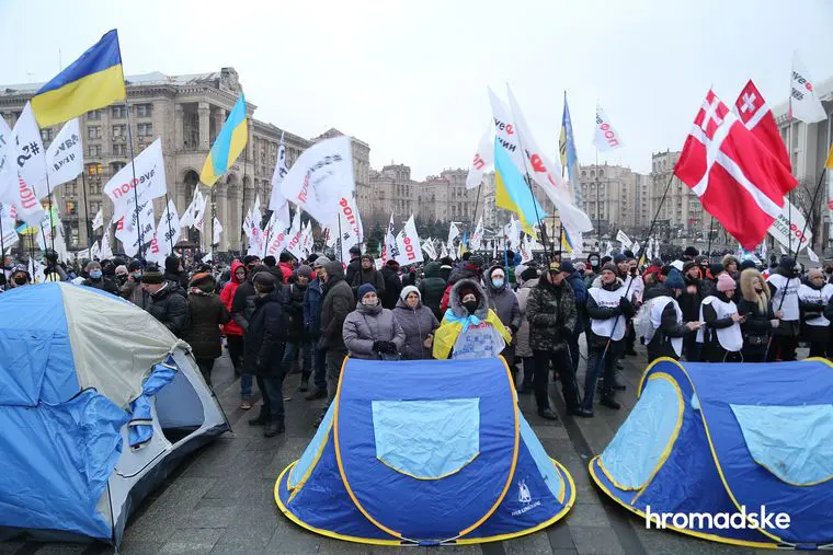 - 15 грудня учасники акції протесту “СТОП локдаун!” спробували поставити на Майдані намети, однак поліція їм завадила.