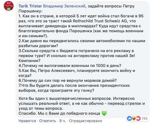 Tarik Tristar: Скільки бюджетних грошей витрачено в першому турі на його рекламу і антирекламу проти нашої Зе! Компанії?