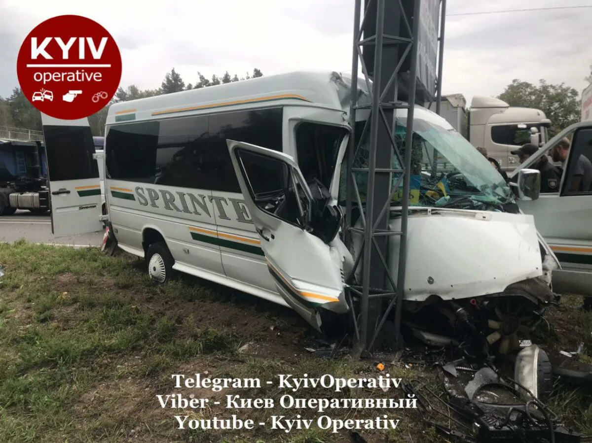 В результаті зіткнення з автомобілем Opel пасажирський Mercedes вилетів на узбіччя, де зіткнувся з рекламною спорудою. За попередньою інформацією, легковий автомобіль підрізав мікроавтобус.