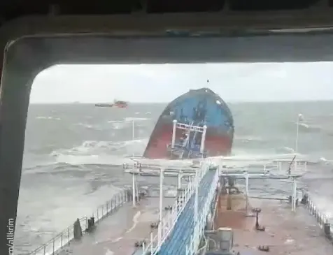 Згодом у росЗМІ почала з’являтися інформація, що тонуть два танкери, один із яких розбило навпіл і в море почав виливатися мазут. За попередніми даними, на його борту 14 осіб екіпажу.