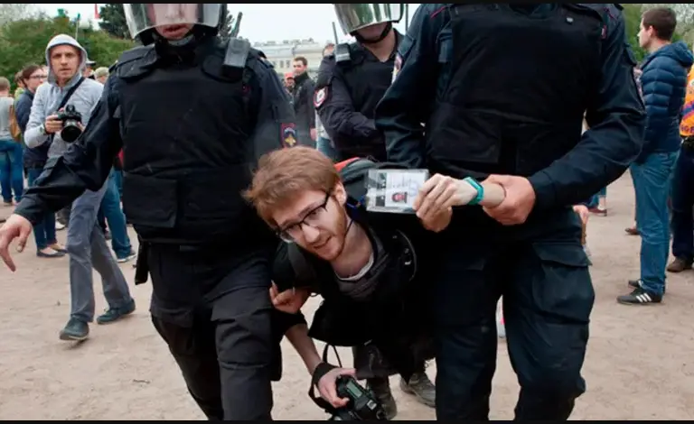 До повідомлення дипломати прикріпили фото, на якому силовики тягнуть під руки російського журналіста Давида Френкеля в Санкт-Петербурзі.