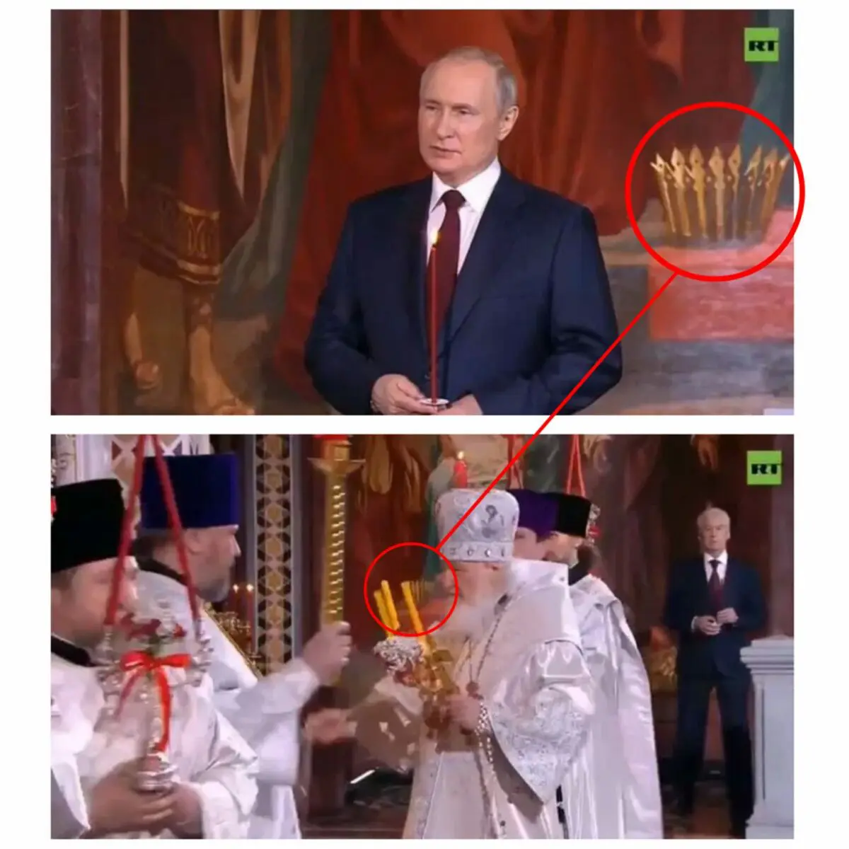 Більш того, поширюване фото з Путіним з великодньої служби було зроблено в 2021 році. Про це свідчить те, що Путін і Собянін одягнені так само, як в 2021 році, у них такі ж зачіски, вони тримають червоні свічки.
