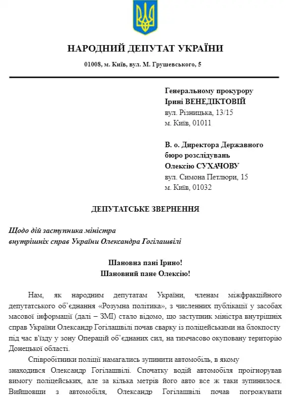 Парламентська група “Розумна політика” ініціювала кримінальне провадження з приводу поведінки колишнього заступника міністра внутрішніх справ Олександра Гогилашвілі. Про це розповів народний депутат Дмитро Разумков на своїй сторінці в Facebook.