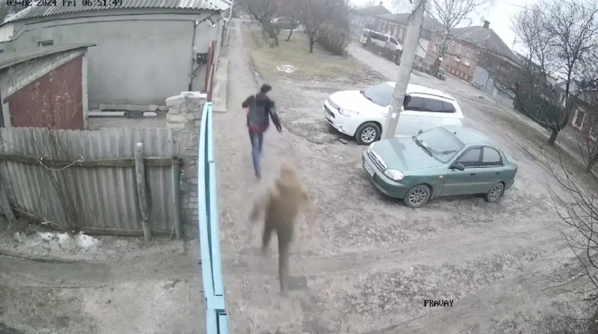 У кінці вулиці вони його відпускають. На місці побиття залишився рюкзак чоловіка. Один з військових проходячи повз нього підіймає його з землі, заглядає в середину та викидує в кущі.