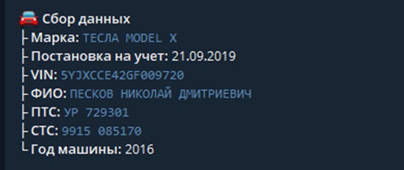 Як пише Sota, відомо, що раніше машину, крім Чоулза, використовував і Пєсков. Уточнюється, що попри продаж автомобіля, Чоулз продовжує володіти одним із двох полісів ОСАГО, оформлених на електрокар.