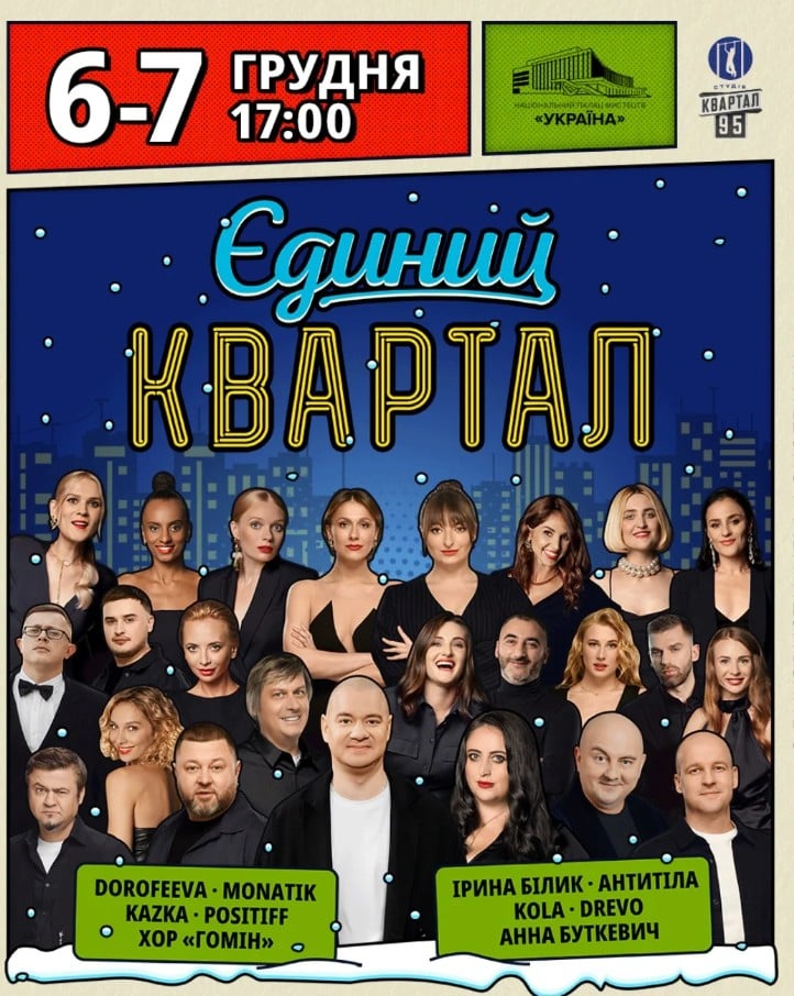 Концерт “Квартал 95” запланований на 6-7 грудня у Палаці Україна. До скандалу з Міндічем в ньому планували брати участь популярні українські зірки — Монатік, Надя Дорофєєва, Позитив, Ірина Білик та інші.