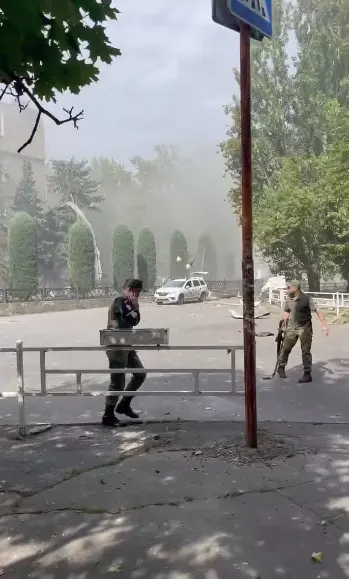 Кремлівське видання «РІА Новини» стверджує, що в центрі міста впало щонайменше п’ять ракет. Один зі снарядів влучив у будівлю, в якій облаштувалася окупаційна влада. Раніше це була будівля апеляційного суду.