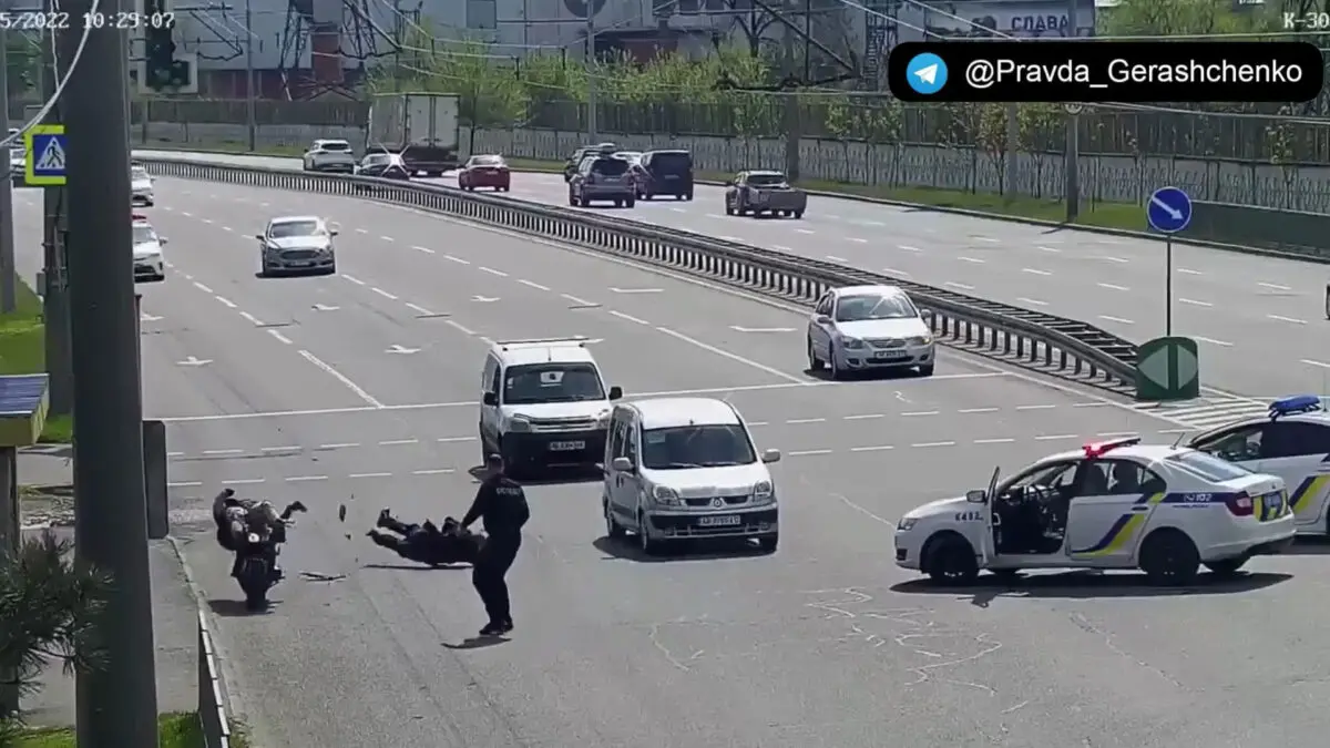 В результаті цей мотоцикліст скоїв умисний наїзд на поліцейського. Правоохоронця госпіталізували з відкритим переломом ноги, та закритою черепно-мозковою травмою голови.