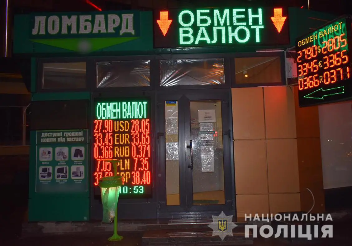 У поліцію звернулася працівниця обмінного пункту по проспекту Героїв Сталінграда. За її словами, в момент закриття обмінного пункту до неї підійшов невідомий і заштовхав назад в приміщення. Зловмисник вдарив касира в обличчя і, погрожуючи предметом, схожим на пістолет, забрав з каси 1 млн 600 тисяч гривень. Жінка з тілесними ушкодженнями була доставлена в лікарню.